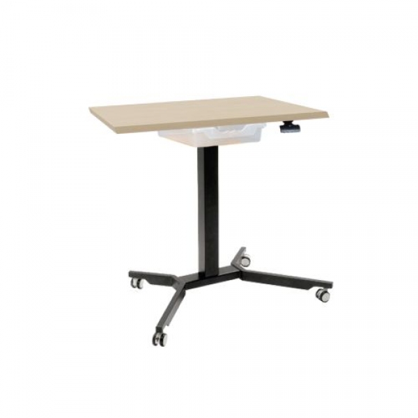 Die Höhenverstellung funktioniert mittels Gasdrucksystem. Der Auslösung mit ergonomischem Griff ist im Randbereich unter der Tischplatte montiert und ohne bücken oder knien erreichbar.