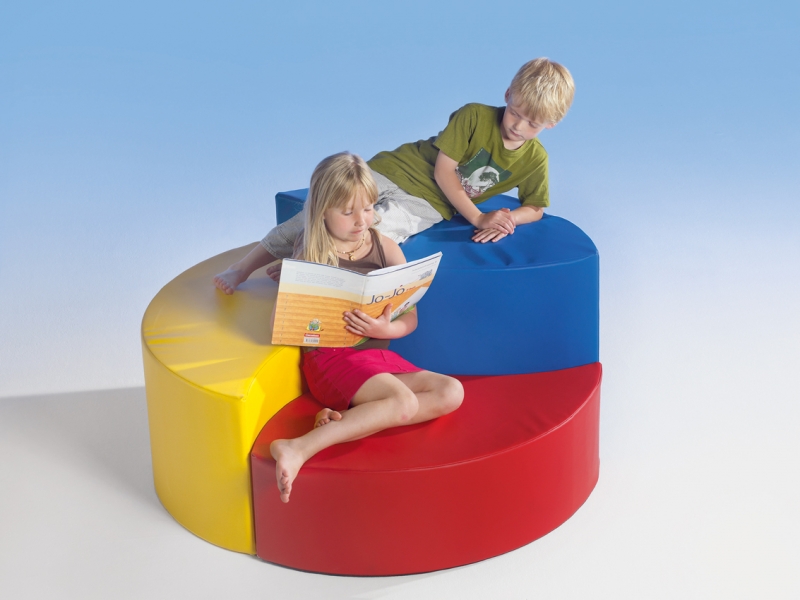 Stufenförmig angeordnet laden sie zum Sitzen, Lesen, Balancieren und Toben ein.