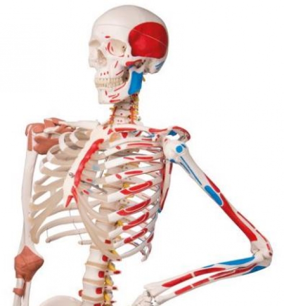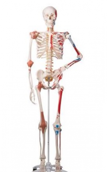 Sam bietet alle Vorzüge eines hochwertiken Skelettes. Zusätzlich können Sie mit Sam die Bewegungen des Schädels in den Kopfgelenken demonstrieren und aufgrund der vollkommen flexiblen Wirbelsäule die natürlichen Körperhaltungen nachstellen.