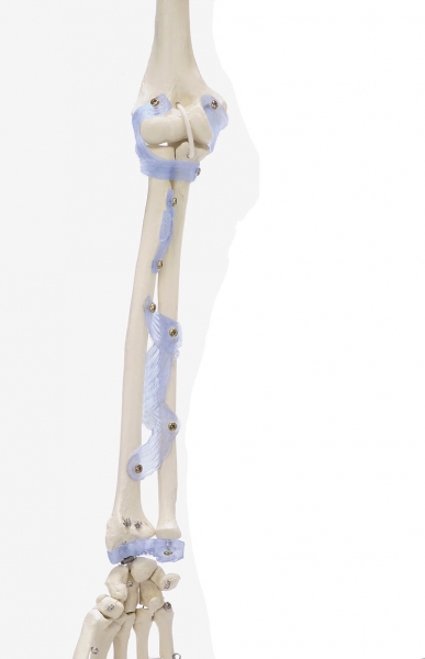 Flexible Gelenkbänder an Knie, Hüfte, Ellenbogen und Schulter ermöglichen die Demonstration der Bewegungen und die Erklärung der Funktion. Die jeweils wichtigsten Bänder sind dargestellt.