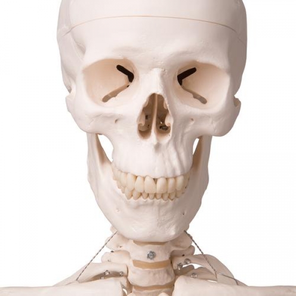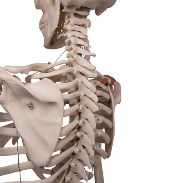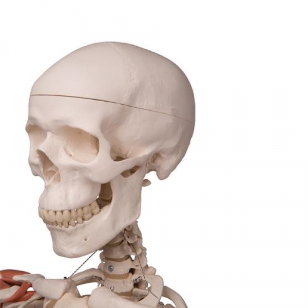 Skelett-Modell Leo bietet die Vorzüge eines hochwertigen Skeletts mit zusätzlicher Darstellung der funktional-anatomischen Zusammenhänge zwischen Knochen und Gelenkbändern.