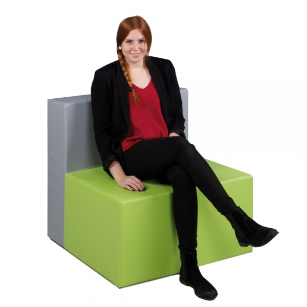 Edler Sessel, der in Kombination mit dem Hocker- und Eckteilelement ideal in Bibliotheken, Aufenthaltsräume oder Lese- und Spielecken passt.