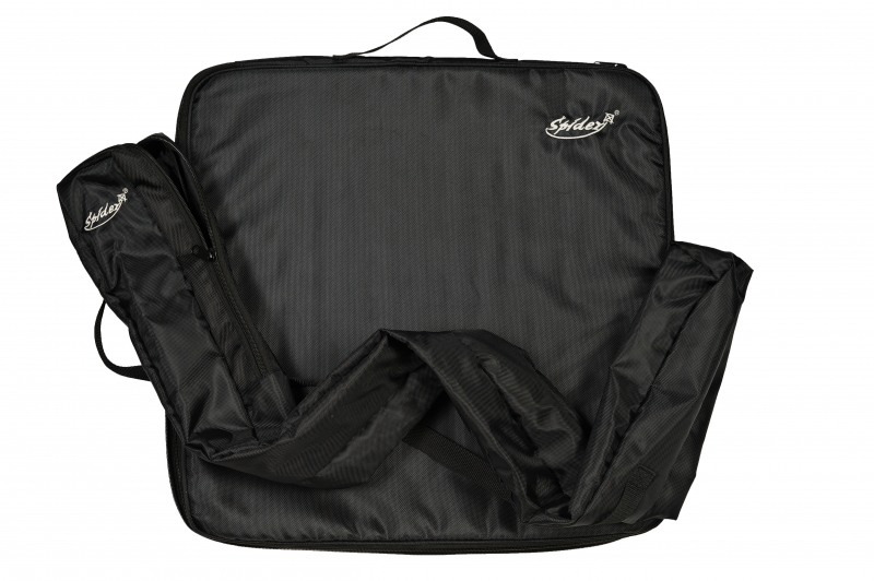 Reißverschlusstaschen für Gestell und Platte.