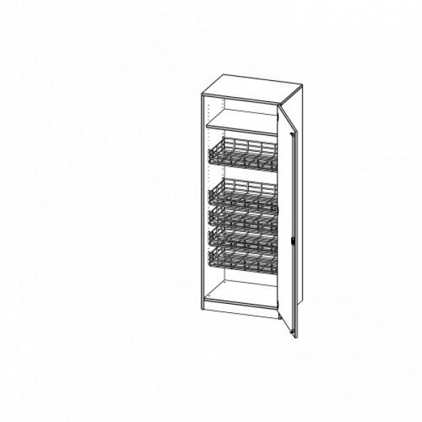 Alle Schränke werden aus melaminharzbeschichteter E1 Feinspanplatte gefertigt, die FSC zertifiziert und formaldehydfrei sind. Als Kanten verwenden wir besonders robuste 2 mm starke ABS Kanten, die unter hoher Temperatur fest verleimt werden. Bitte wählen Sie Ihr Wunschdekor aus unserer Dekorpalette aus. Die Einlegeböden sind im Raster von 32 mm verstellbar. Unsere hochwertigen Bodenträger verfügen über einen "Ausziehstop", so wird verhindert, dass Böden mit Inhalt darauf aus dem Regal oder Schrank rutschen können. Die Türen lassen sich dank 270° öffnender Scharniere an den Korpus anlegen. Sie sind mit einem Schloss verschließbar. An den Türen befindet sich eine Staublippe.