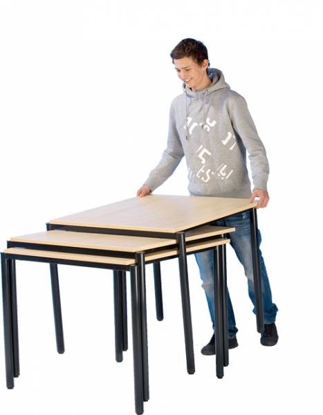 Der Stapeltisch Modell "Stack-O-Flex" ist in Klassenräumen, Mehrzweckräumen und bei der Gruppenarbeit schnell und flexibel einsetzbar. Der Stack-O-Flex Stapeltisch steht Ihnen immer dann schnell zur Verfügung, wenn er gebraucht wird. Andernfalls kann er platzsparend gestapelt werden, unterschiedlich genutzte Räume bleiben flexibel einsetzbar. Die besonderen Eigenschaften des Stack-O-Flex Stapeltisches prädestinieren diesen Tisch für flexible gehaltene Raumausstattungen - Konstruktion: durch die besondere Konstruktion des Tischgestelles ist der Stack-O-Flex "fugenlos" miteinander kombinierbar und natürlich stapelbar - Qualität und Stabilität: das Tischgestell des Stack-O-Flex Stapeltisches ist fest verschweißt, keine wackeligen Schraubverbinden. Alle Stahlteile sind pulverbschichtet nach RAL, lieferbare Farben finden Sie in der Farbauswahl auf der linken Seite. - Tischplatten: Als Tischplatten steht eine melaminharz- beschichtete E1-Qualitäts- Feinspanplatte 19mm stark( mit schlagzähem 2mm ABS- Umleimer 2mm stark) zur Verfügung. - Farben und Dekore: Die lieferbaren RAL- Farben für die Tischgestelle und Plattendekore für die Tischplatten finden Sie in der Farbauswahl auf der linken Seite Maße und Ausführung: