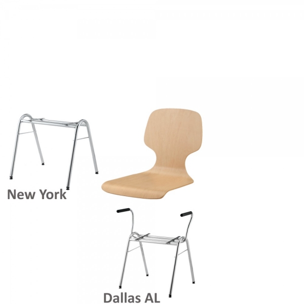 Der stapelbare Schalenstuhl mit Sitzschale Barcelona kann mit Rundrohrgestellen in unterschiedlichen Bauformen, mit und ohne Armlehnen und / oder Reihenverbindung bestellt werden. Die Sitzschale besteht aus mehrfach verleimtem formgepreßtem Bucheschichtholz und ist ergonomisch gearbeitet, natur lackiert.