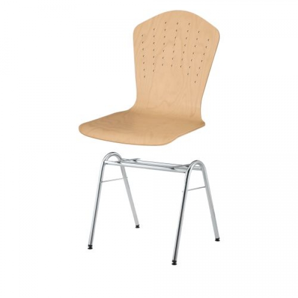 Der stapelbare Schalenstuhl mit Sitzschale "London" kann mit Rundrohrgestellen in unterschiedlichen Bauformen, mit und ohne Armlehnen und / oder Reihenverbindung bestellt werden. Die Sitzschale besteht aus mehrfach verleimtem formgepreßtem Bucheschichtholz und ist ergonomisch gearbeitet, natur lackiert.