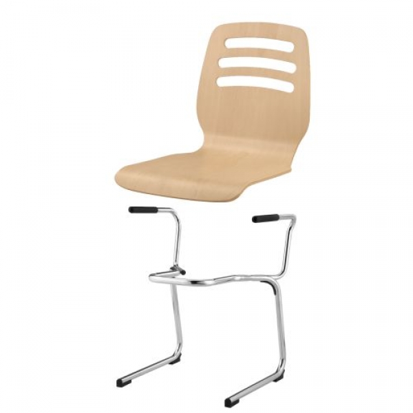 Der stapelbare Schalenstuhl mit Sitzschale "Mailand" kann mit Rundrohrgestellen in unterschiedlichen Bauformen, mit und ohne Armlehnen und / oder Reihenverbindung bestellt werden. Die Sitzschale besteht aus mehrfach verleimtem formgepreßtem Bucheschichtholz und ist ergonomisch gearbeitet, natur lackiert.