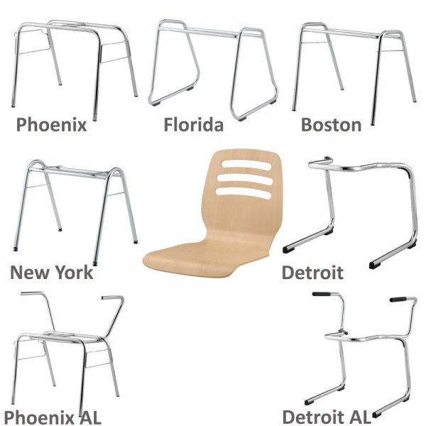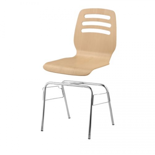 Der stapelbare Schalenstuhl mit Sitzschale "Mailand" kann mit Rundrohrgestellen in unterschiedlichen Bauformen, mit und ohne Armlehnen und / oder Reihenverbindung bestellt werden. Die Sitzschale besteht aus mehrfach verleimtem formgepreßtem Bucheschichtholz und ist ergonomisch gearbeitet, natur lackiert.