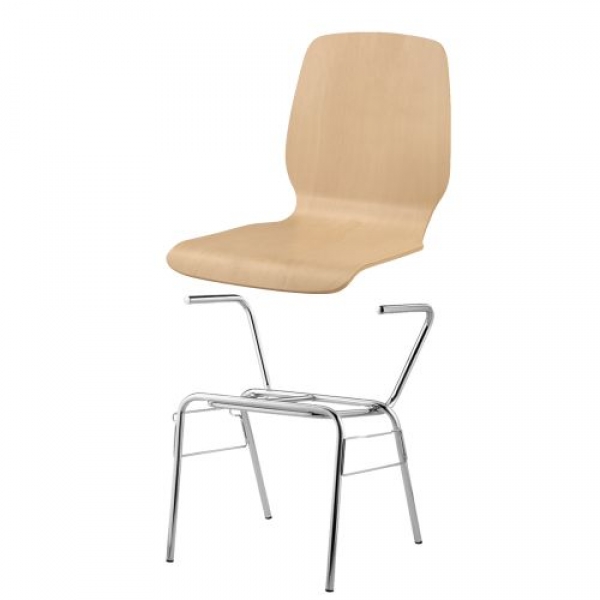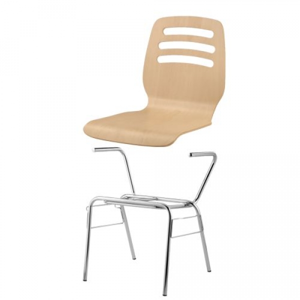 Der stapelbare Schalenstuhl mit Sitzschale "Mailand" kann mit Rundrohrgestellen in unterschiedlichen Bauformen, mit und ohne Armlehnen und / oder Reihenverbindung bestellt werden. Die Sitzschale besteht aus mehrfach verleimtem formgepreßtem Bucheschichtholz und ist ergonomisch gearbeitet, natur lackiert.