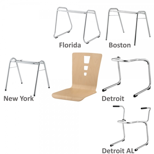 Der stapelbare Schalenstuhl mit Sitzschale "Paris" kann mit Rundrohrgestellen in unterschiedlichen Bauformen, mit und ohne Armlehnen und / oder Reihenverbindung bestellt werden. Die Sitzschale besteht aus mehrfach verleimtem formgepreßtem Bucheschichtholz und ist ergonomisch gearbeitet, natur lackiert.