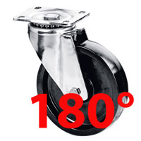 - Drehkranzgelagerte Laufrollen mit Rollenlager (bis 80 °C) ermöglichen eine gute Lauf- und Wendeeigenschaft der voll ausgelasteten Trockenwagen.