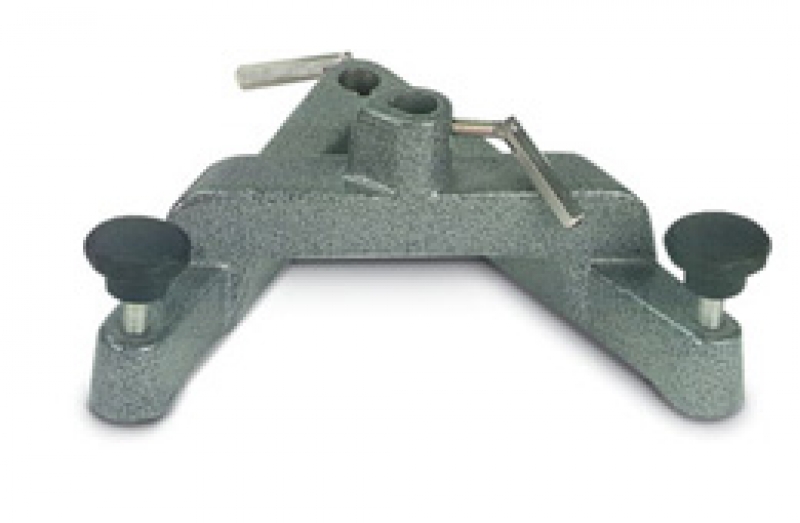 Aus Grauguss mit zwei Bohrungen für Stativstangen mit Durchmesser von 4 bis 15 mm, Nivellierung mit zwei Einstellschrauben.