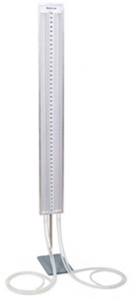 Satz von vier Steigrohren mit Millimeterskala zur Messung der Druckverhältnisse an bis zu vier Messstellen des Strömungskreislaufs.
