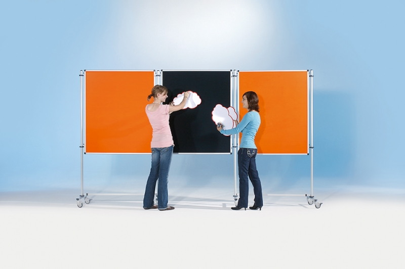Mit 3 Klettenstofftafeln 150 x 120 cm (NSTT-F2) und 2 fahrbaren Stativen (SRZ190).