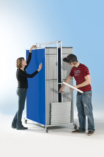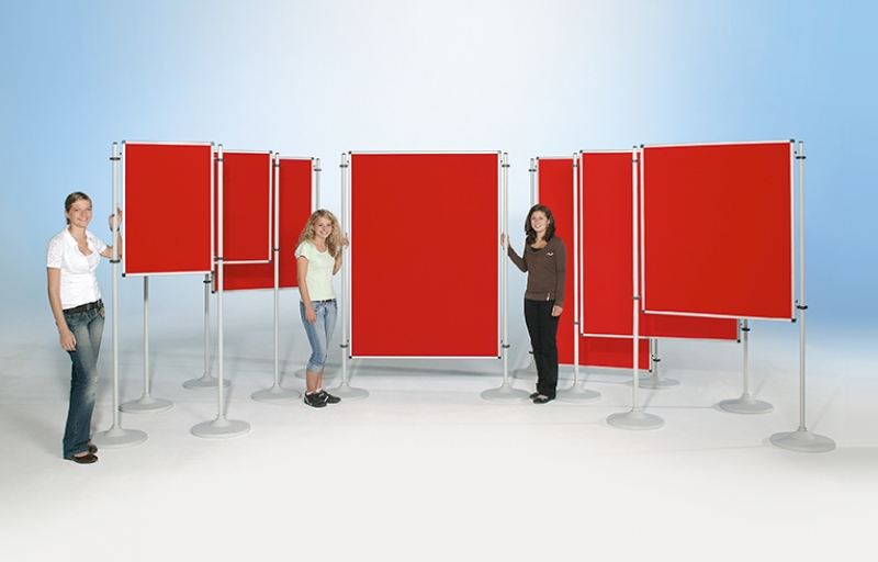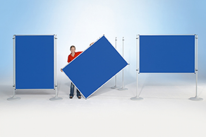 Stellwände doppelseitig mit Klettenstoff- Oberfläche, zum Befestigen Ihrer Info's mit Klettband oder Pinnadeln, inklusive 4 Einhängeschlitten (NSTT P).