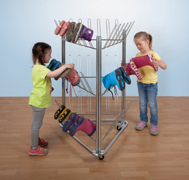 Stiefeltrockenwagen für 27 Paar Stiefel, verzinkt. Fahrbar mit 3 Lenkrollen, davon 1 feststellbar