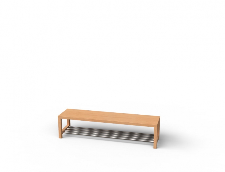 Stollen-Garderobenbank "Eco-Line"BxHxT 140 x 34 x 35 cm passend für 7 Plätze seitlich offen mit Quadratstollenaus Buche Dekor -mit Alu-Rost