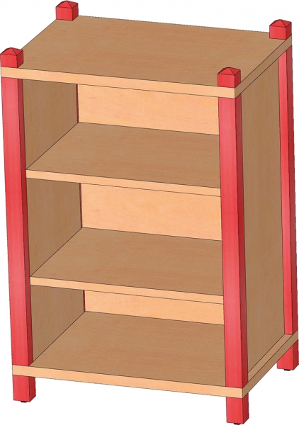 Die seitlichen Stollen, Füße und Abschlusskappen sind aus Buche Massivholz gefertigt. Die Korpusteile aus E1 Spanplatten. Die verstellbaren Einlegeböden sind gegen Herausziehen gesichert.