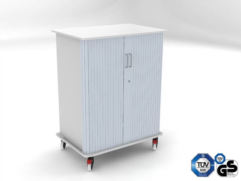 Der funktionale Rollschrank bietet Platz für bis zu 24 Notebooks auf robusten Metallauszügen und kann wahlweise mit einem Drucker ausgestattet werden.