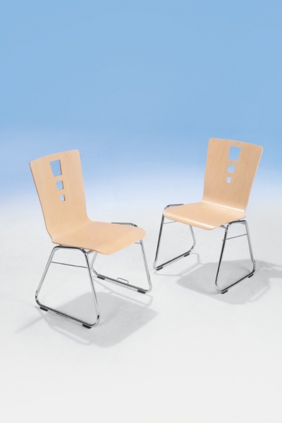 Kombinieren Sie den Stuhl nach Ihren Bedürfnissen und Wünschen. Er ist stapelbar, so können viele Stühle auf kleinem Raum verstaut werden. Das Kufengestell ist aus Stahl mit edlem Chromfinish.