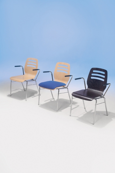 Kombinieren Sie den Stuhl nach Ihren Bedürfnissen und Wünschen. Er ist stapelbar, so können viele Stühle verstaut auf kleinem Raum verstaut werden. Das 4-Fuß-Gestell ist aus Stahl mit edlem Chromfinish.