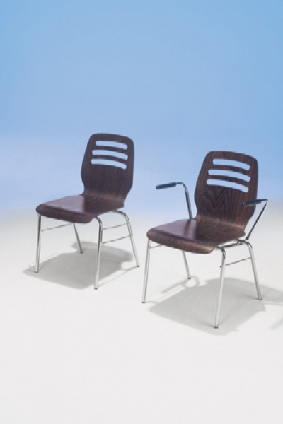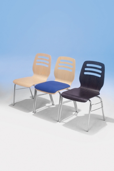 Kombinieren Sie den Stuhl nach Ihren Bedürfnissen und Wünschen. Er ist stapelbar, so können viele Stühle auf kleinem Raum verstaut werden. Das 4-Fuß-Gestell ist aus Stahl mit edlem Chromfinish.