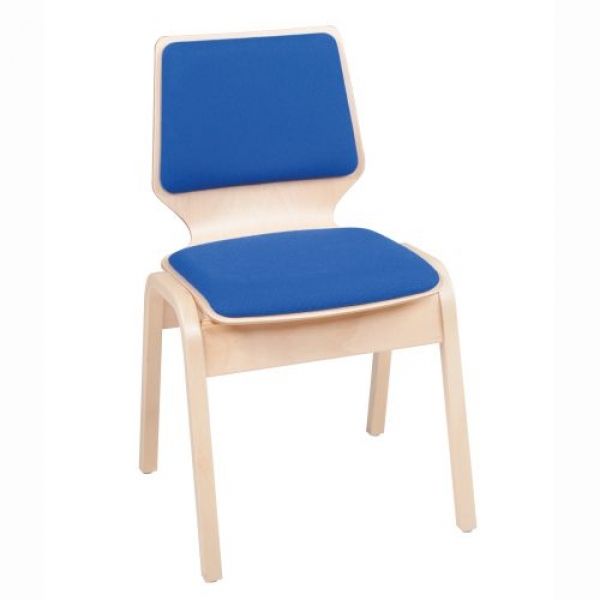Die Polsterfarbe ist wählbar, sowie auch die Beiztöne der Sitz- und Rückenflächen. Dieser Stuhl lässt sich auch ganz einfach stapeln und schafft damit immer den nötigen Platz.