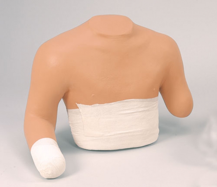 Oberkörper mit Amputationsstümpfen zur Übung der Verbandstechniken. Natürliche Größe.