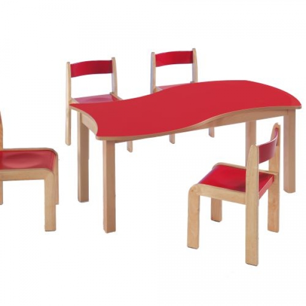 Der Swing-It Woody Rechteckwellentisch ist ein Massivholztisch mit einer 19 mm starken, melaminharzbeschichteten Spanplatte in der umweltfreundlichen E1-Qualität hergestellt. Sie ist besonders leicht zu reinigen und kann natürlich feucht abgewischt werden. Die Tischplatte ist in fröhlichen Dekoren erhältlich, die Tischkante ist immer im Dekor Buche gehalten.