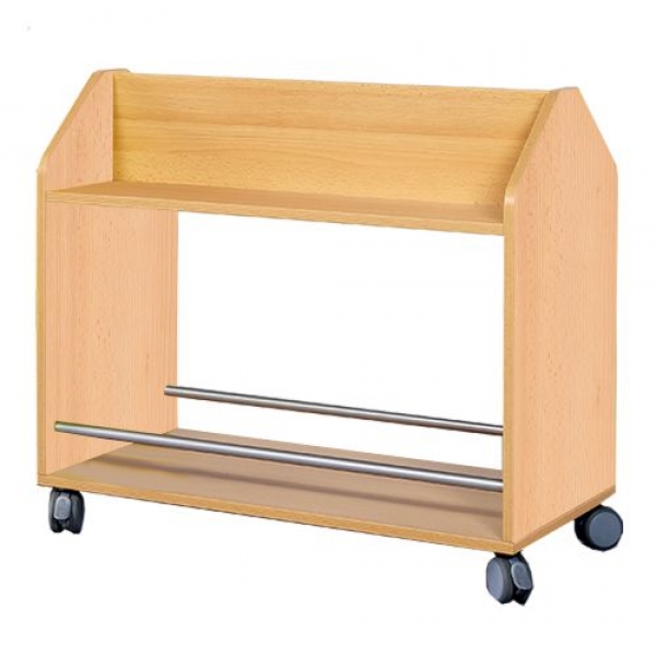 Der Taschenwagen mit Ablagen auf beiden Seiten bietet viel Stauraum für Schulranzen, Taschen und Mützen und Fahrradhelme und und und... andere persönliche Utensilien! Dazu ist das Staugut auf dem unteren Boden mit 2 Aluminiumstangen gegen Herausfallen gesichert, wenn der Wagen in eine andere Zimmerecke ausweichen muss. Das verwendete feuerhemmende B1-Material besitzt als Dekor Buche. Die Höhe des Taschenwagens beträgt 82 cm, die Tiefe 50 cm, er ist auf 4 Doppelrollen, davon 2 Stück mit Feststellern, zuverlässig und sicher unterwegs. Die Wagenseiten haben als Sicherheitsaspekt abgeschrägte Ecken, die zudem formschön wirken. Die Wagenbreite und damit die verfügbare Nutzeranzahl sind wählbar.