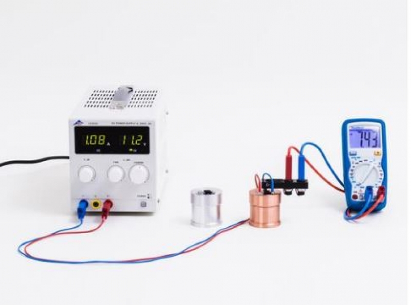 Kalorimeterkörper zum Wärmeäquivalentgerät sowie zur Bestimmung der spezifischen Wärmekapazität. Mit Bohrung zur Aufnahme des Temperaturfühlers und eingebautem Heizelement.