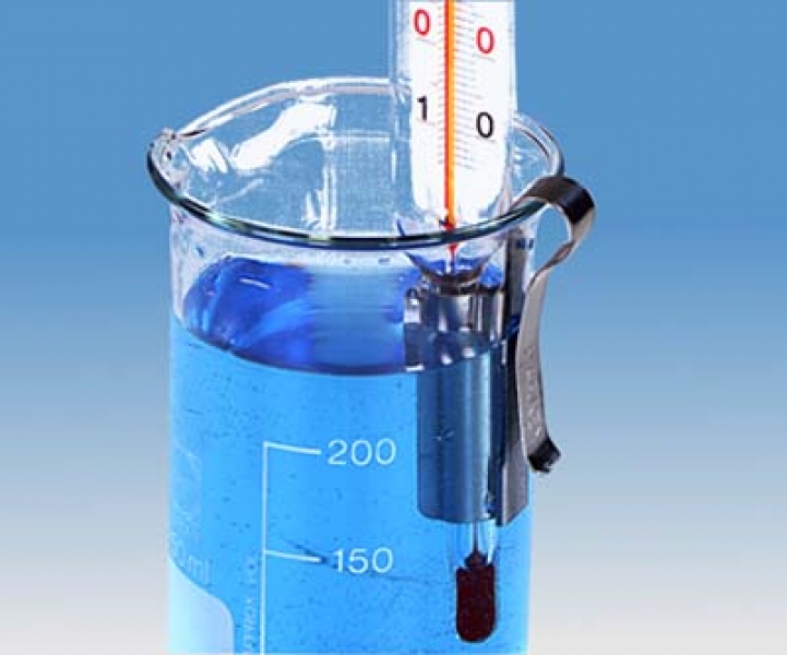 Clip aus Edelstahl zur Halterung von Thermometern in Bechergläsern.