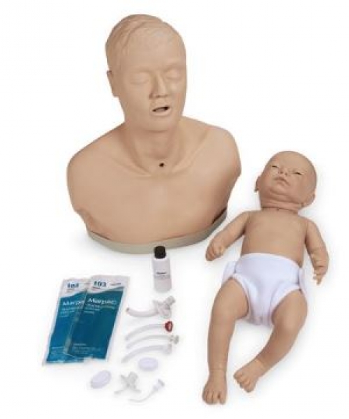 Das Set beinhaltet eine Übungspuppe Erwachsener und eine Übungspuppe Kleinkind, eine Tracheostomiekanüle für Erwachsene und eine für Kleinkinder, eine Bedienungsanleitung und einen Tragekoffer.