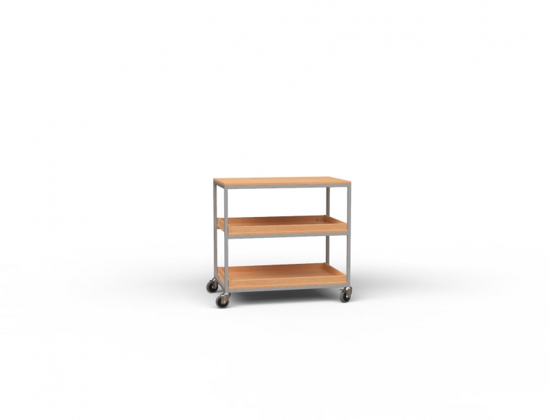 Transportwagen, fahrbar, BxHxT 100 x 90 x 60 cm 1 glatte Ablageflächen 2 Ablagen mit Aufkantung ( mitte / unten ) 4 Rollen, 2 davon feststellbar