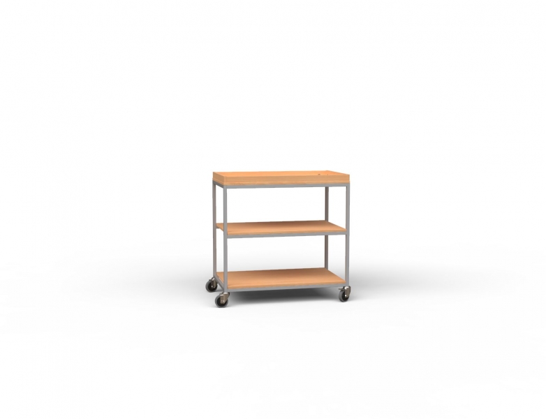 Transportwagen, fahrbar, BxHxT 100 x 90 x 60 cm 2 glatte Ablageflächen 1 Ablage mit Aufkantung ( oben ) 4 Rollen, 2 davon feststellbar