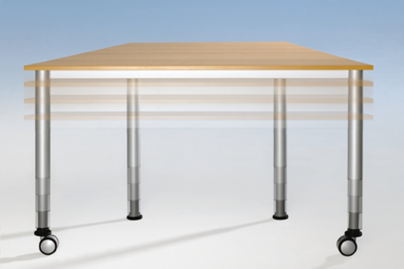 Die beiden feststellbaren Rollen an einer Seite des Tisches machen eine schnelle Änderung der Anordnung im Raum möglich.