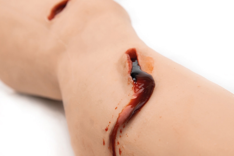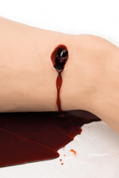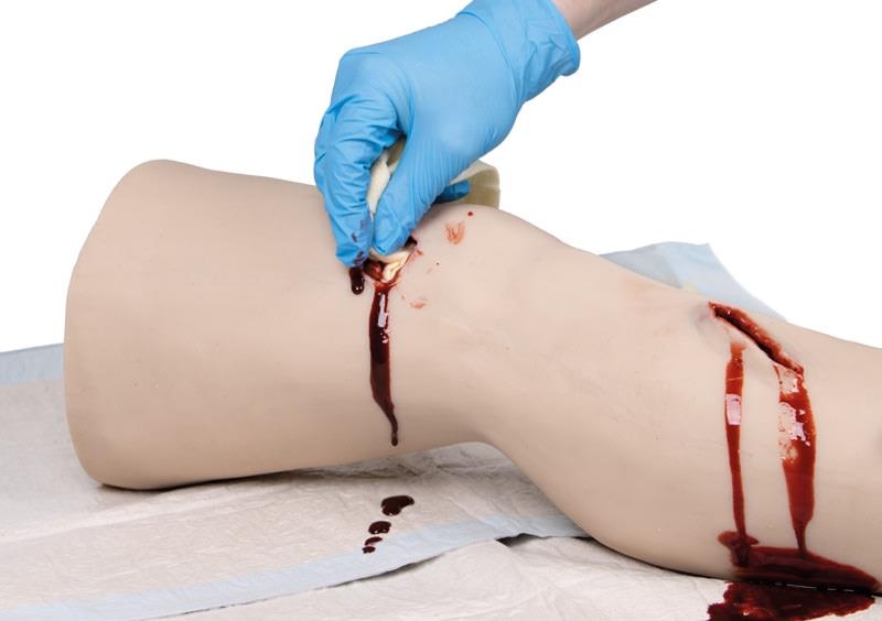 Üben Sie Erste-Hilfe-Maßnahmen und versorgen Sie eine größere Blutung mit dem Trauma Leg.