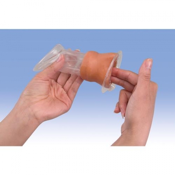 Das Modell zeigt aus didaktischen Gründen eine sehr vereinfachte Darstellung der Schamlippen und der Scheide bis zum Muttermund, um das Einführen eines Kondoms für die Frau zu demonstrieren und zu erlernen. Im Lieferumfang sind drei Femidom-Kondome enthalten.