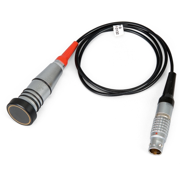 Ultraschallsonde für Untersuchungen mit mittlerer Eindringtiefe und mittlerer Tiefenauflösung, 16 mm Piezokeramik-Scheibe in vergossenem Metallgehäuse, Schallanpassung an Wasser/Acryl, 1 m Kabel mit frequenzkodiertem Snap-In- Stecker. Abmessungen: 65 mm x 27 mm Ø Verwendung: mit Ultraschall-Echoskop GS200
