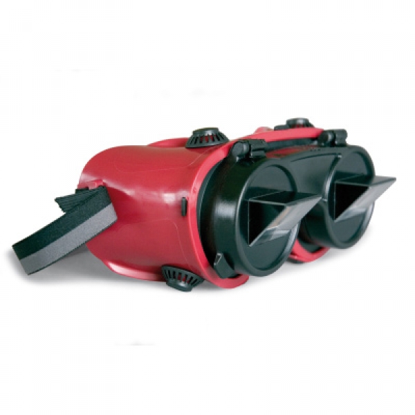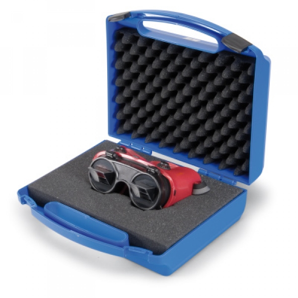Umkehrbrille mit zwei vollständig drehbaren Umkehrprismen im abgeschirmten Brillengestell.