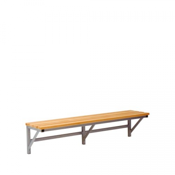 Umkleidebank offen zur Wandmontage. Die Sitzflächen sind aus 25 mm starker melaminharzbeschichteter E1- Feinspanplatte mit ABS- Umleimer im Dekor nach Wahl gefertig.