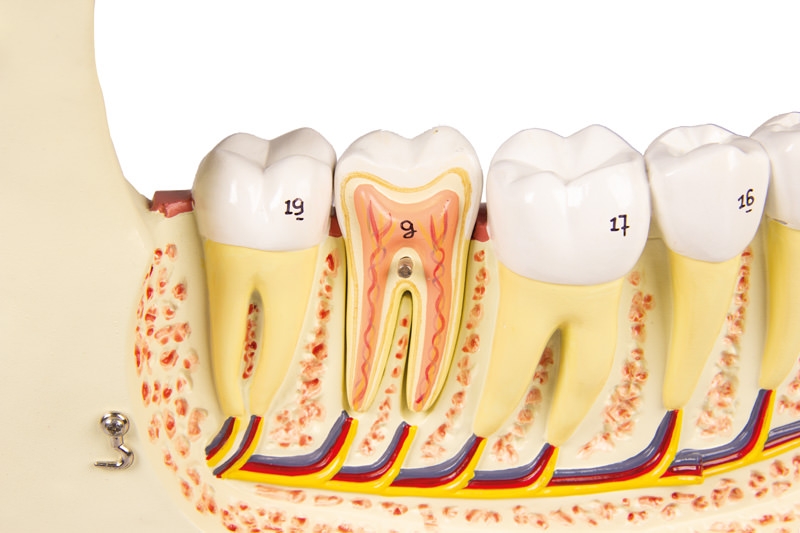 Zahnwurzel, Nerven und Gefäße zu betrachten. Mit Stativ.