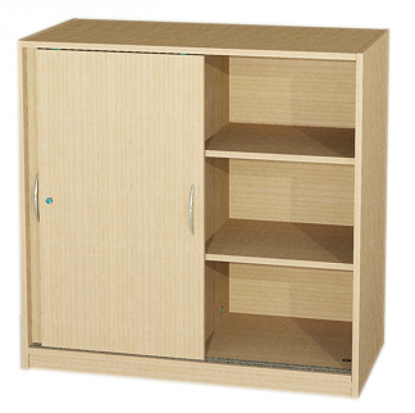 Unterschrank, BxHxT 100x98x50 cm 2 Schiebetüren, abschließbar, Segmentbogengriffe ( RM 128 mm ) verchromt matt, Mittelwand, 2x2 Einlegeböden