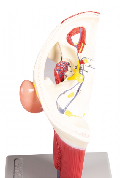 Das Modell zeigt den Verlauf der linken V. jugularis interna in der Kopf- und Nackenregion mit ihren zuführenden venösen Gefäßen. Mit Sockel.