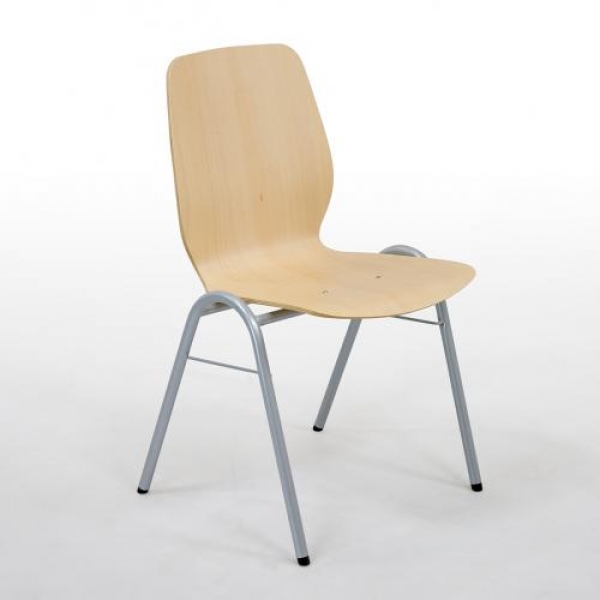 Stapelbarer Vierbeinstuhl mit Stahlrohrgestell und ergonomisch geformter Sperrholz- Sitzschale "B"