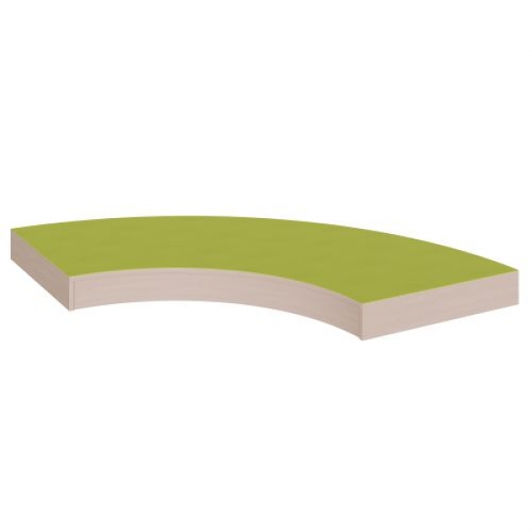 Das Viertelkreis-Bogenpodest in den Grundmaßen 150 x 150 cm, einem 150-cm-Radius auf der Außenseite und dem kleinem inneren 80-cm-Radius bietet 2 Anstelllängen von 70 cm für Stellkombinationen. Wie alle Linoleumpodeste für Spiel- und Bewegungsbereiche dieser Baureihe besitzt auch dieses die mit Linoleum beschichtete Oberplatte. Alle Randbereiche sind geschlossen, die stabile Bauweise garantiert eine langfristige Nutzung. Die Linoleumoberfläche ist in vielen freundlichen Farben wählbar und besitzt eine strapazierbare und pflegeleichte Oberfläche, deren weitere Vorteile in Kratzfestigkeit, Desinfizierbarkeit und Geräuschdämmung zu sehen ist. Das Dekor der melaminbeschichteten Oberflächen ist passend zur Optik von anderen Möbeln im Raum wählbar. Die Anbindung zu anderen Podestelementen kann über zusätzliche Podestverbinder (unsere Artikel Nr. KLAM) sicher gestellt werden. Die Anbindung zu anderen Podestelementen kann über zusätzliche Podestverbinder (unsere Artikel Nr. KLAM) sicher gestellt werden.