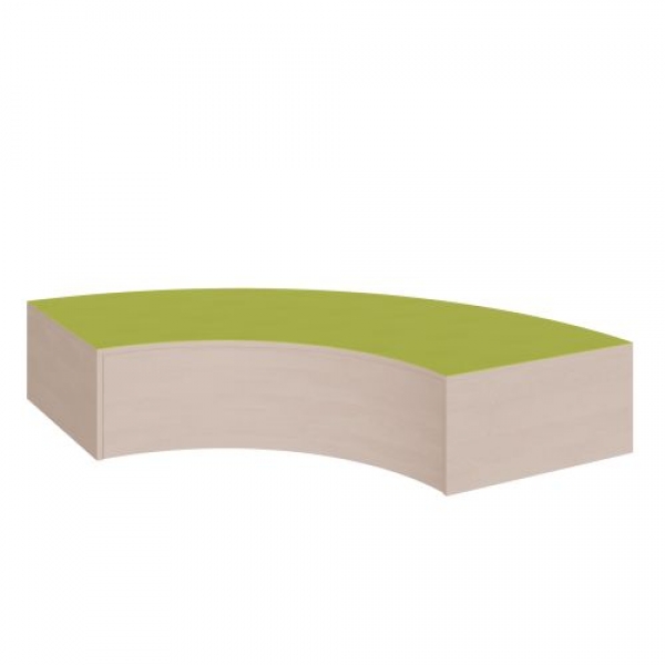 Das Viertelkreis-Bogenpodest in den Grundmaßen 150 x 150 cm, einem 150-cm-Radius auf der Außenseite und dem kleinem inneren 80-cm-Radius bietet 2 Anstelllängen von 70 cm für Stellkombinationen. Wie alle Linoleumpodeste für Spiel- und Bewegungsbereiche dieser Baureihe besitzt auch dieses die mit Linoleum beschichtete Oberplatte. Alle Randbereiche sind geschlossen, die stabile Bauweise garantiert eine langfristige Nutzung. Die Linoleumoberfläche ist in vielen freundlichen Farben wählbar und besitzt eine strapazierbare und pflegeleichte Oberfläche, deren weitere Vorteile in Kratzfestigkeit, Desinfizierbarkeit und Geräuschdämmung zu sehen ist. Das Dekor der melaminbeschichteten Oberflächen ist passend zur Optik von anderen Möbeln im Raum wählbar. Die Anbindung zu anderen Podestelementen kann über zusätzliche Podestverbinder (unsere Artikel Nr. KLAM) sicher gestellt werden. Die Anbindung zu anderen Podestelementen kann über zusätzliche Podestverbinder (unsere Artikel Nr. KLAM) sicher gestellt werden.