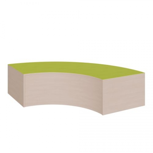 Das Viertelkreis-Bogenpodest in den Grundmaßen 150 x 150 cm, einem 150-cm-Radius auf der Außenseite und dem kleinem inneren 80-cm-Radius bietet 2 Anstelllängen von 70 cm für Stellkombinationen. Wie alle Linoleumpodeste für Spiel- und Bewegungsbereiche dieser Baureihe besitzt auch dieses die mit Linoleum beschichtete Oberplatte. Alle Randbereiche sind geschlossen, die stabile Bauweise garantiert eine langfristige Nutzung. Die Linoleumoberfläche ist in vielen freundlichen Farben wählbar und besitzt eine strapazierbare und pflegeleichte Oberfläche, deren weitere Vorteile in Kratzfestigkeit, Desinfizierbarkeit und Geräuschdämmung zu sehen ist. Das Dekor der melaminbeschichteten Oberflächen ist passend zur Optik von anderen Möbeln im Raum wählbar. Die Anbindung zu anderen Podestelementen kann über zusätzliche Podestverbinder (unsere Artikel Nr. KLAM) sicher gestellt werden. Die Anbindung zu anderen Podestelementen kann über zusätzliche Podestverbinder (unsere Artikel Nr. KLAM) sicher gestellt werden.