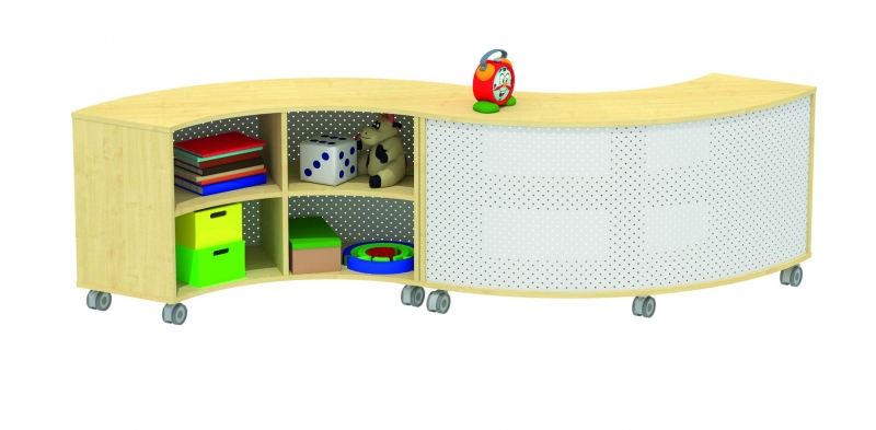 Viertelkreisregal-SET bestehend aus: 2 x Viertelkreisregal fahrbar BxHxT 142 x 75 x 58 cm